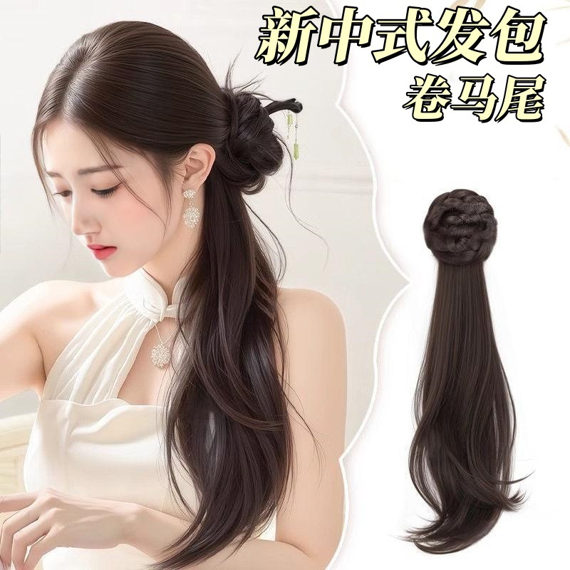 Doudianの人気の新しい中国風の女性用ヘアバッグ、ロールポニーテール、化学繊維高温シルク、安定した供給、卸売
