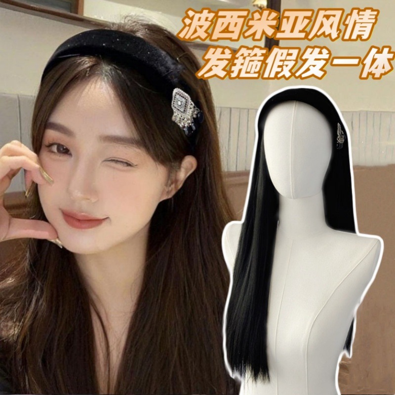 工場直販ウィッグヘアフープ黒ロングストレートヘアオールインワン化学繊維U字型ハーフヘッドギア安定供給スポット卸売