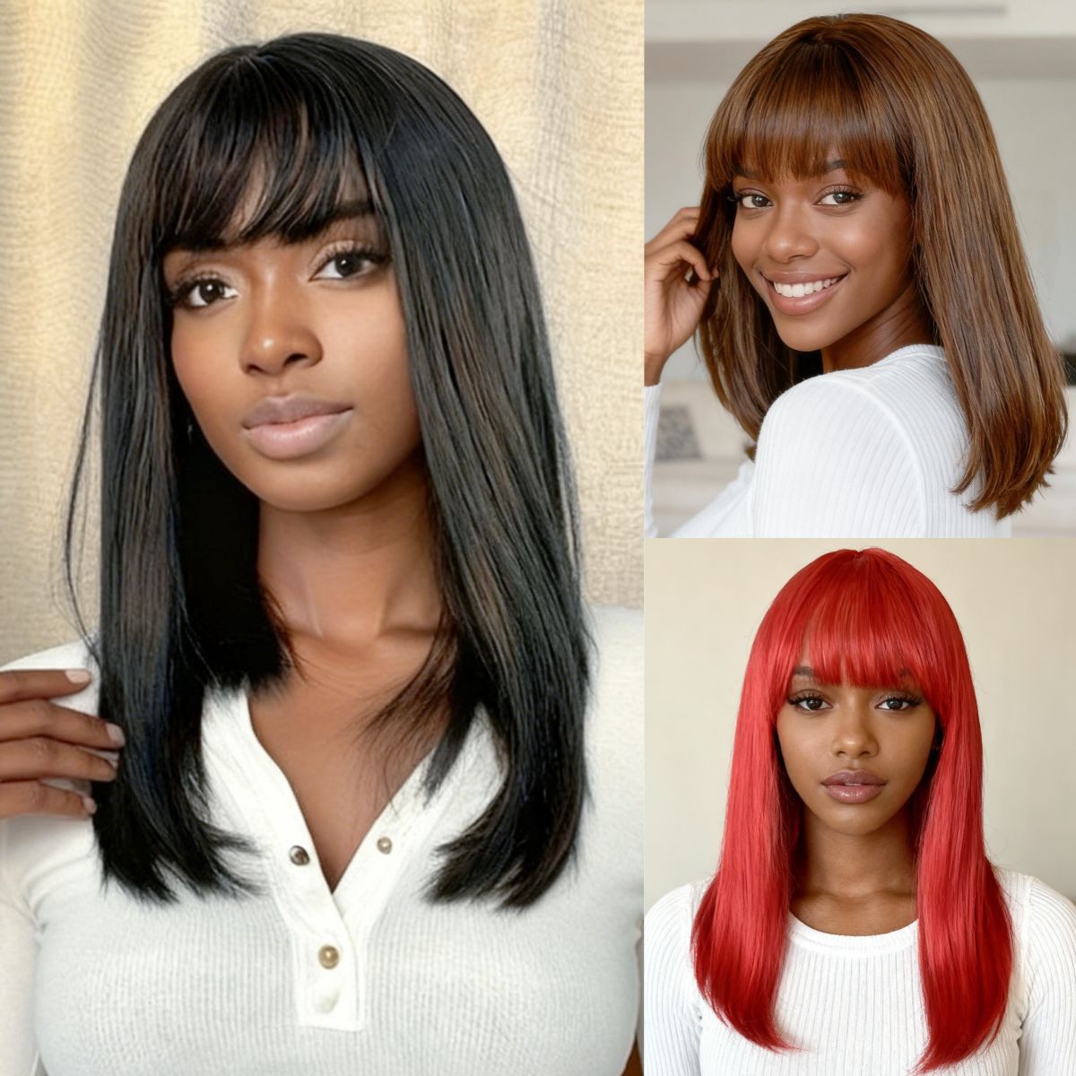 TikTok アフリカ向け輸出用ウィッグ 女性用ウィッグ エアーバングス 通気性のあるボタン付きネットヘッドカバー メーカー在庫あり ロングストレートヘア
