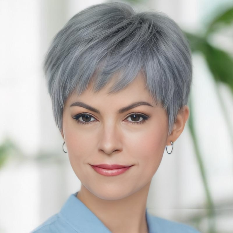 海外の震え音がよく売れているかつら女性のおばあちゃんの灰色の側は短いストレート髪の中高年の通気性かつらの全頭カバー卸売りをしている
