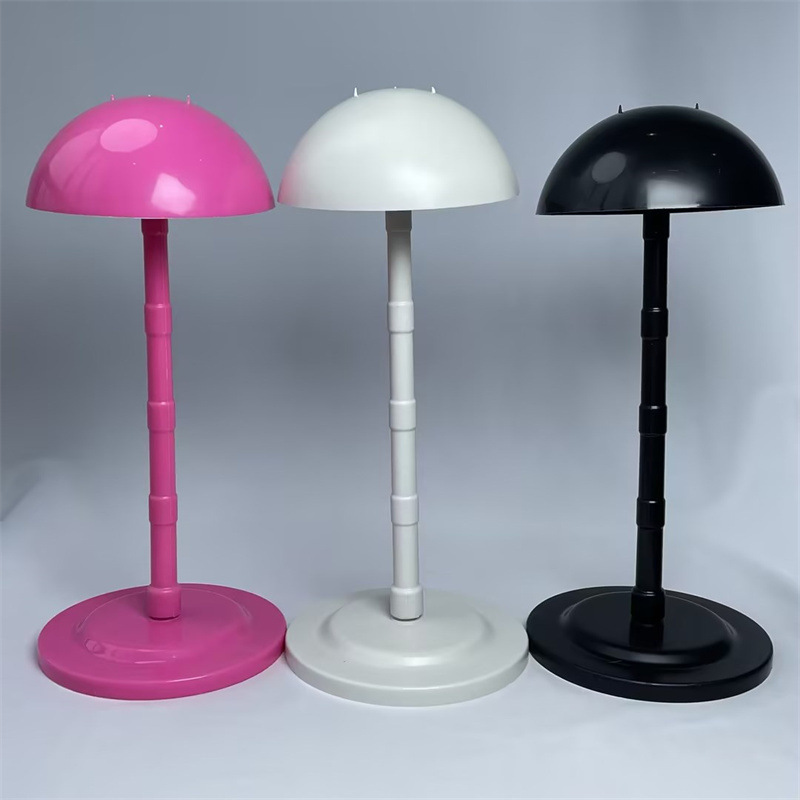 かつらの頭のカバーの部品のプラスチックの丸い頭のキノコの支柱の偽の毛の携帯型の置く棚はかつらの帽子の支えを収納します。