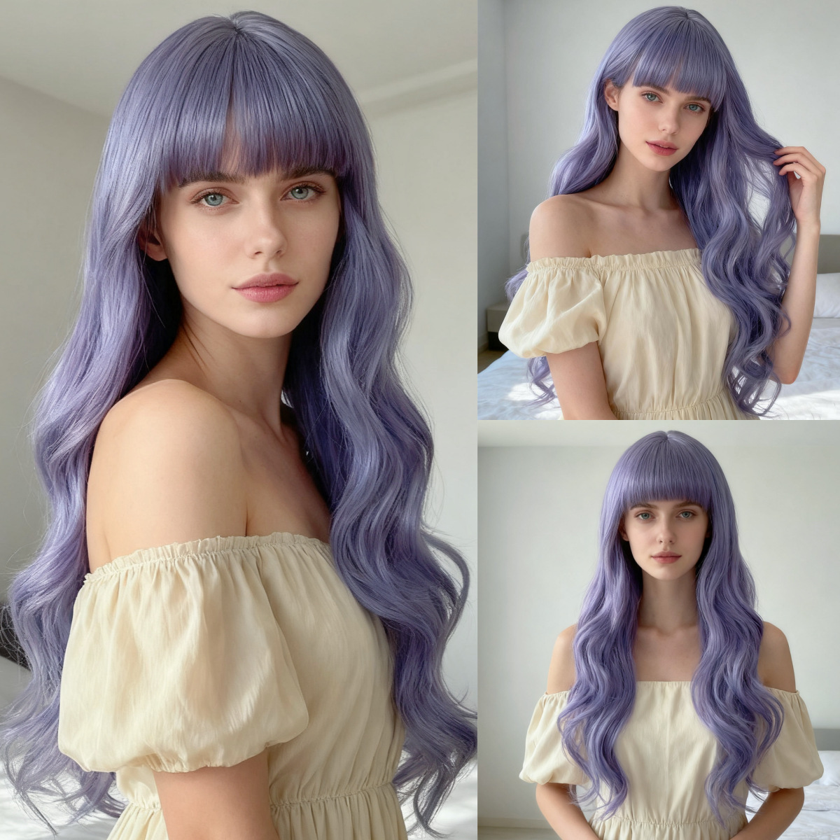 韓国のかつらの女性の長い髪の大きい波の空気の前髪の気質の化学繊維の機械は全体の頭のカバーの長い巻き髪の現物の卸売りを編みます。