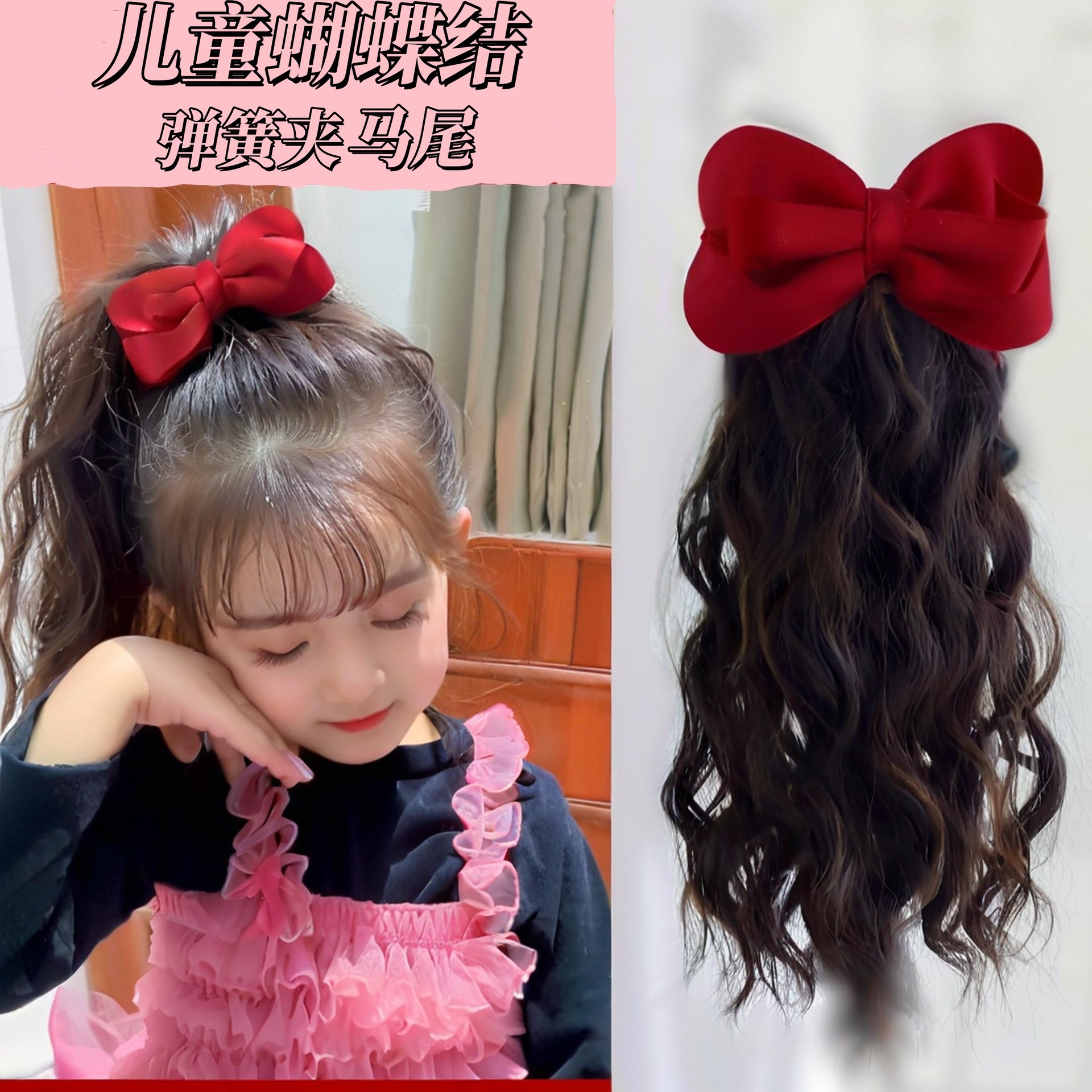 子供のかつらの髪の飾りの王女の形の水の波紋のシミュレーションのかわいい蝶結びの馬尾のお下げのかつらの現物の先発