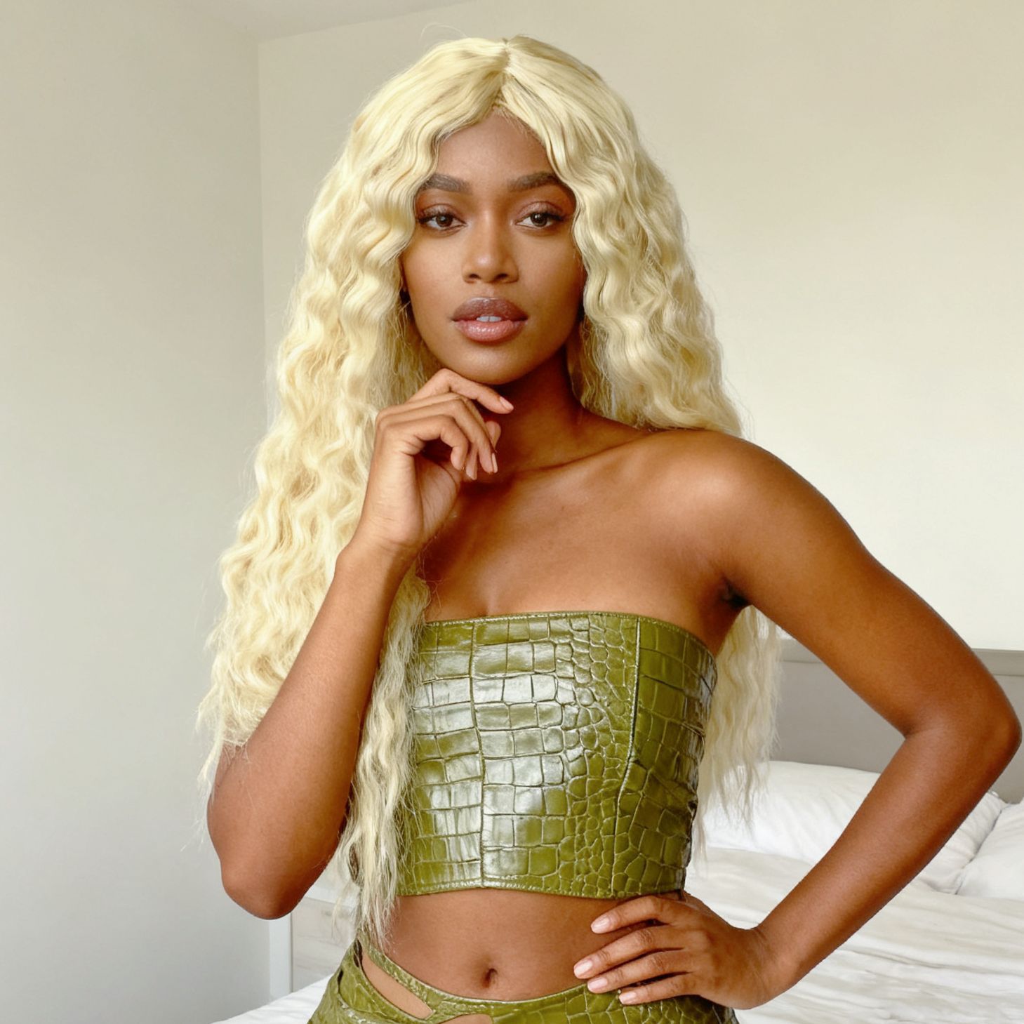 ネットの赤い同タイプのかつらの女性の中で長い髪のすすの青いファッションのウールの巻きの化学繊維の全体のトップのカバーは1件の代行を支持します。