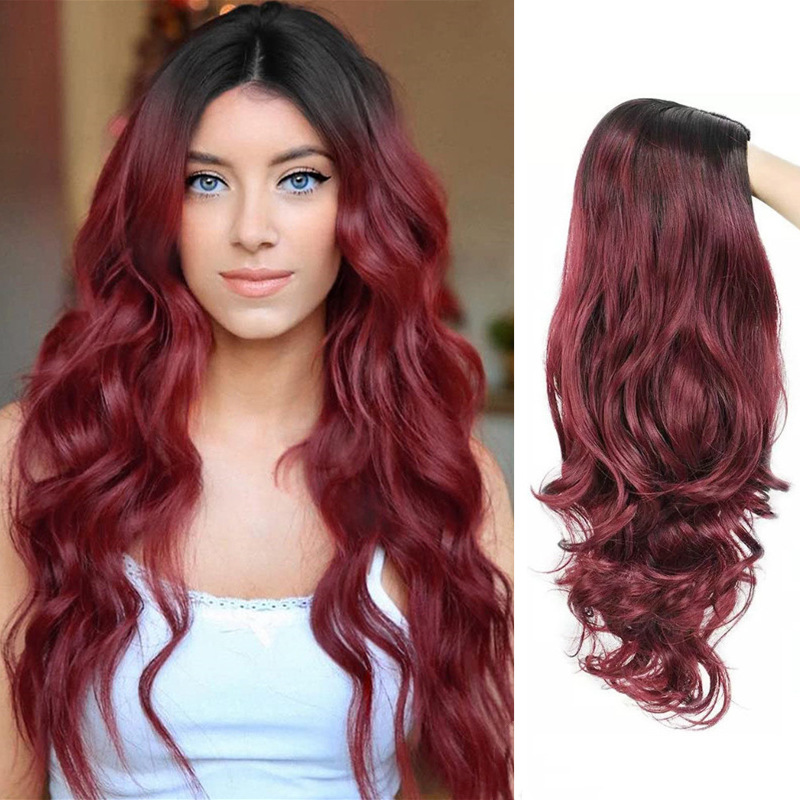 欧米の対外貿易市場の商品のかつらの女性の中で長いカールのワインの赤いbody waveの全体のトップカバーの卸売り