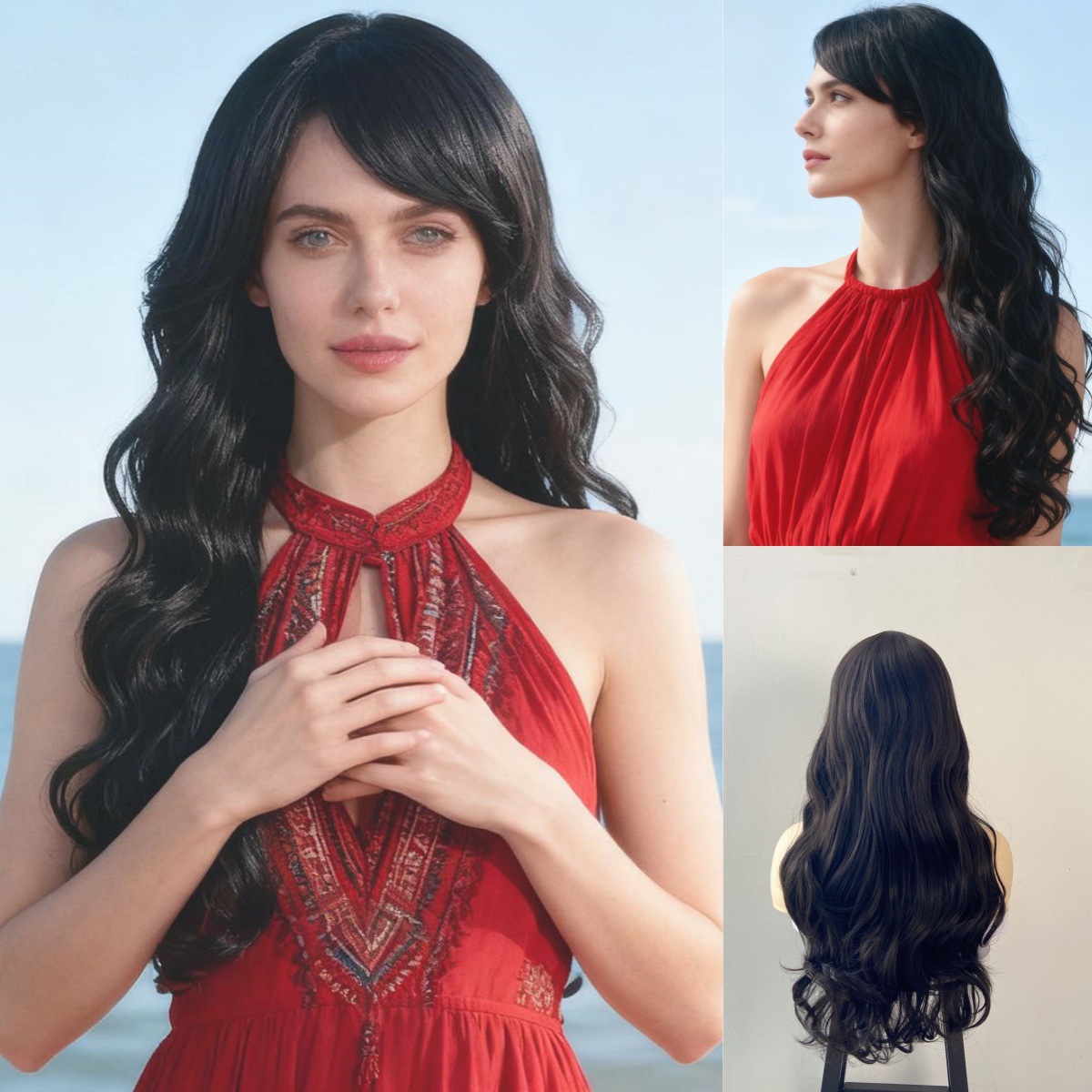 韓国版のかつらの女性の長い巻き髪の斜め前髪のファッションの大きい波は顔の全体のカバー式のネットの赤い同種の長い髪の現物を修理します。