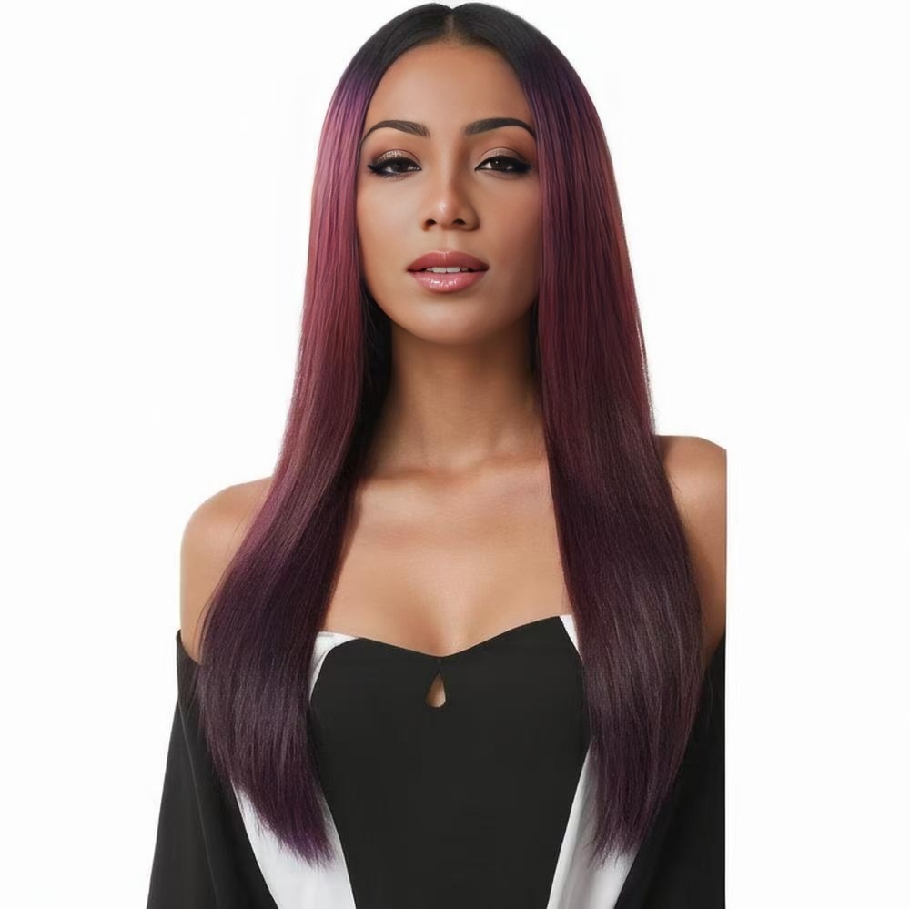 Shein国境を越えた対外貿易のかつら女性のワインレッドのグラデーションの中で前髪の長いストレートのメカニズムを分けてトップカバーを整えます。