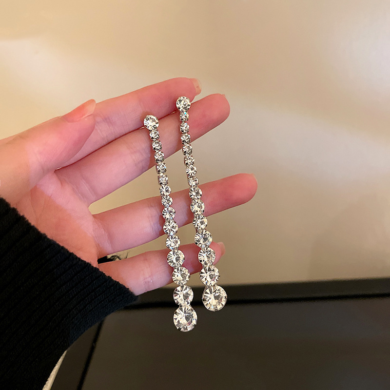 925銀の針のフラッシュのドリルのイヤリングの韓国の長い金型のフリンジはやせている個性の耳飾りの気質のファッションの百合の小さい大衆のピアスを現します。