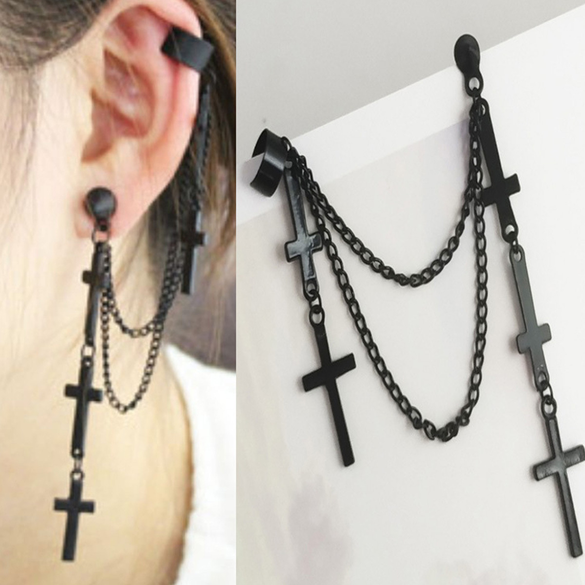 欧米のアクセサリーの耳飾りのイヤリングのファッション的な個性のパンクの二重の十字のフリンジチェーンの耳のクリップの女性