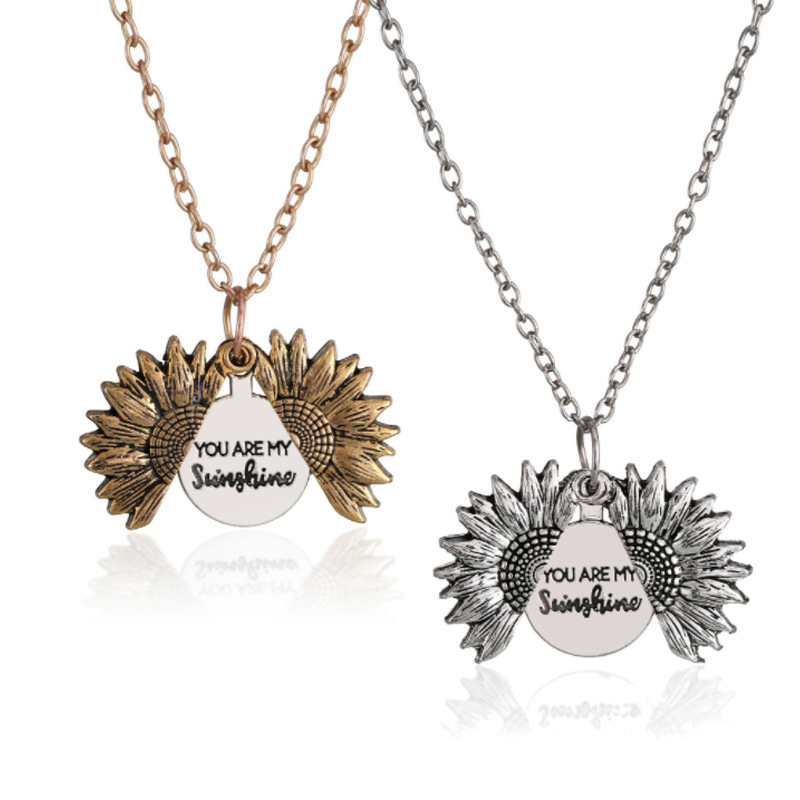 両面ひまわりネックレス合金レタリングyou are my sun shine太陽花ひまわりネックレス