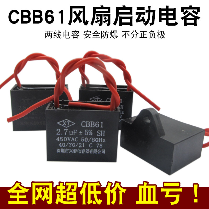 Cbb61ファン起動コンデンサ1.2/1.5/1.8.2/2/3/4/6/7uf天井ファンレンジフード450v