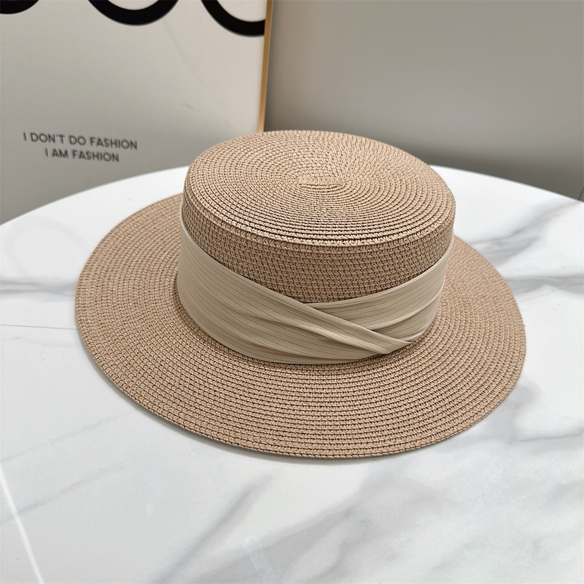 新しいスタイルの麦わら帽子女性の英国スタイルのフラットトップファッショントレンド麦わら太陽の帽子通気性のある旅行海辺の太陽の帽子