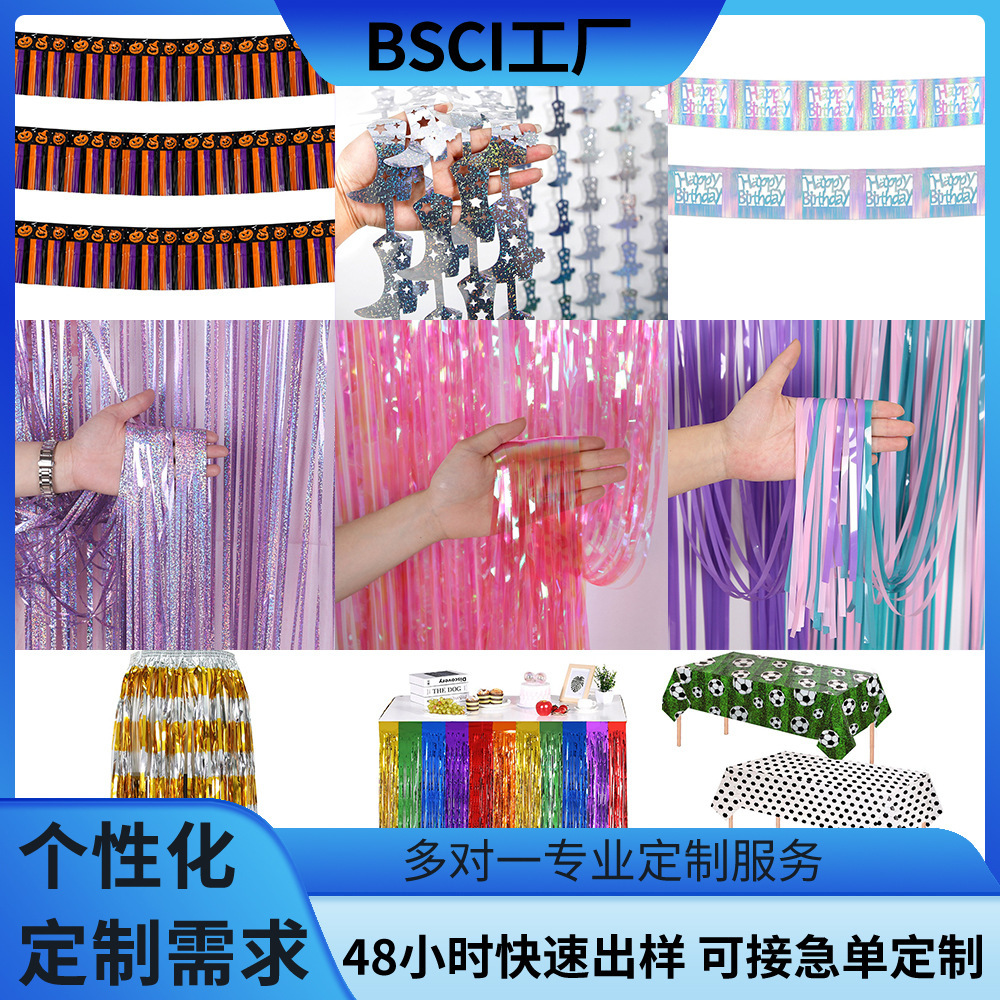 メーカーカスタマイズされたカラーマッチング特殊形状フラットタッセルレインシルクカーテンカスタマイズされたスコビーレーザーレインシルクペット使い捨てテーブルクロス