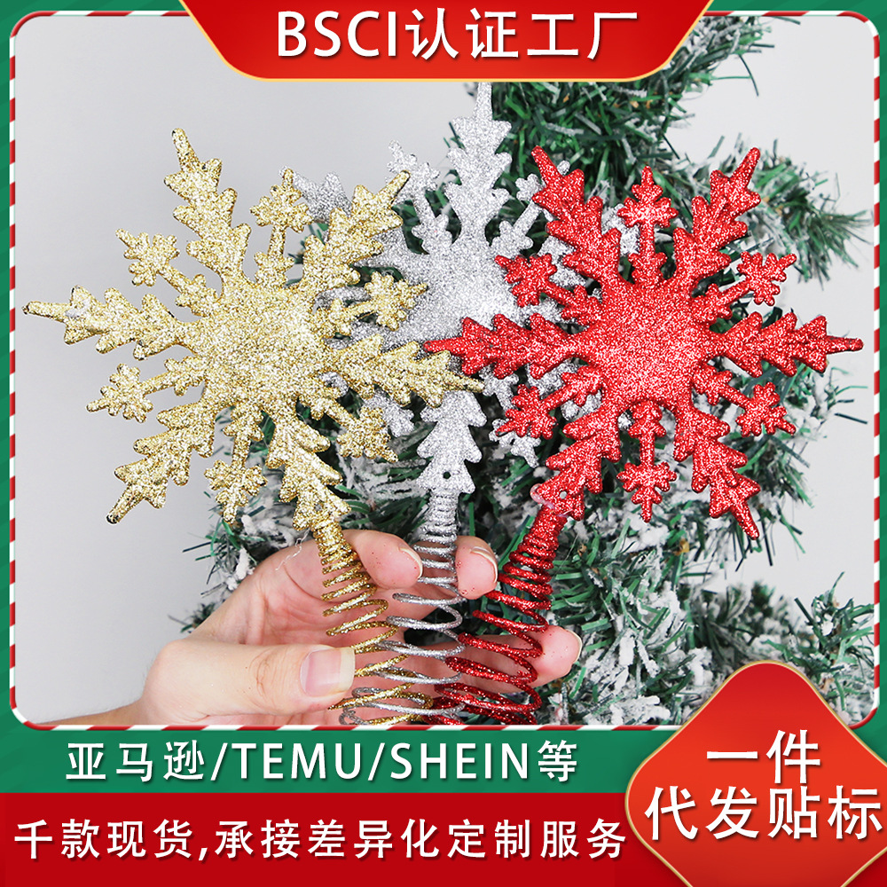 新しいクリスマス装飾21cm粉をまいた木の頂の雪の立体金粉の五角星のクリスマスツリーの鉄芸の木の頂の星