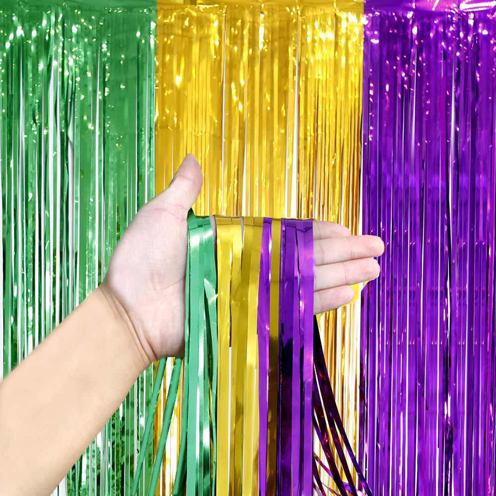 Mardi grasカーニバル装飾雨糸カーテン祝日パーティー背景壁配置緑金紫雨糸カーテン