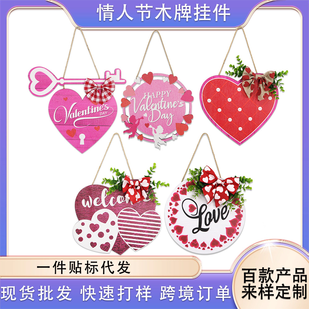 越境して新型の木の愛の看板のバレンタインデーの家庭の装飾品のデパートの店舗のハート型は表札のペンダントを歓迎します。