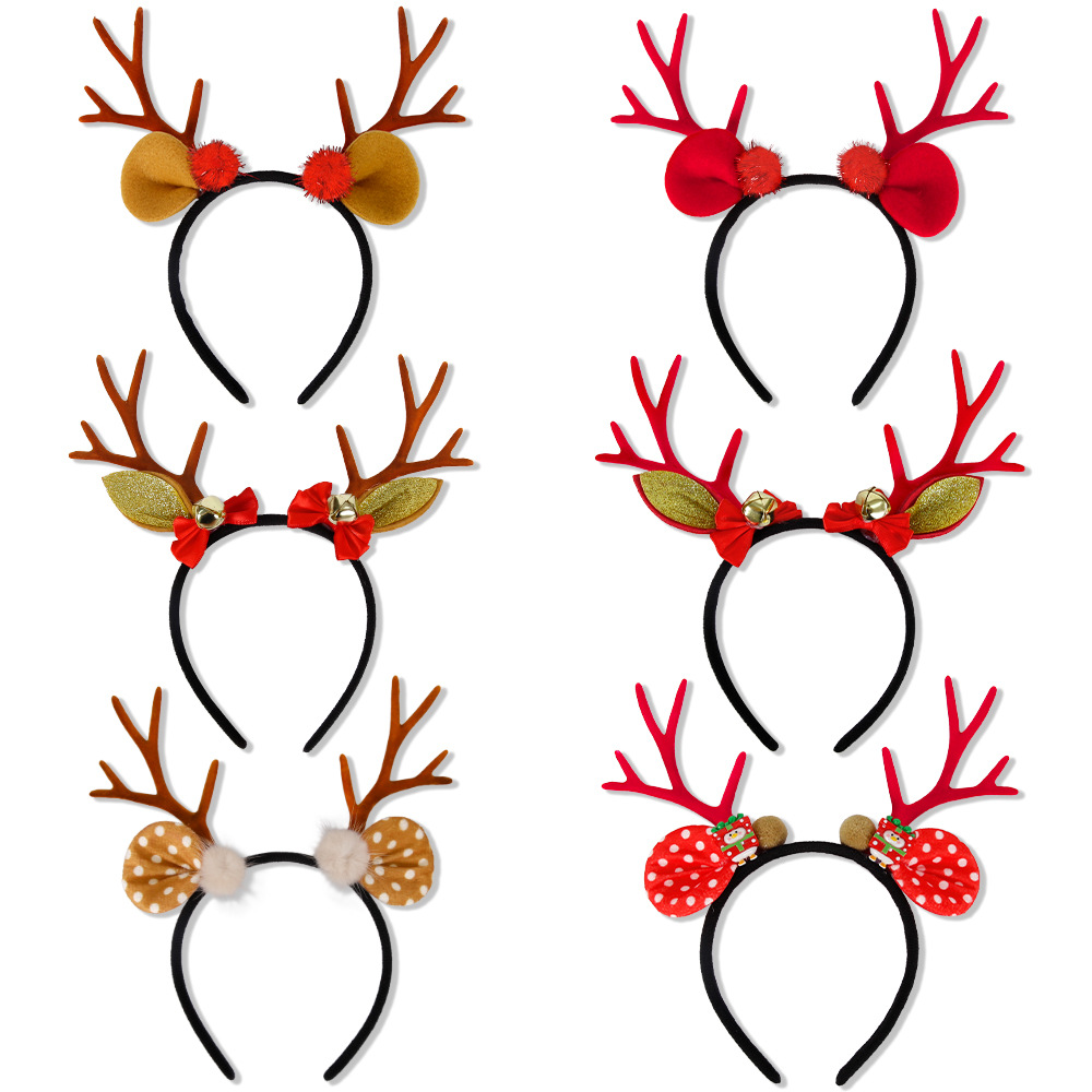 欧米の新しいクリスマスのカチューシャの赤い褐色の鹿の角の頭はクリスマスのパーティーの装飾の森系のヘラジカの角のカチューシャを飾ります。