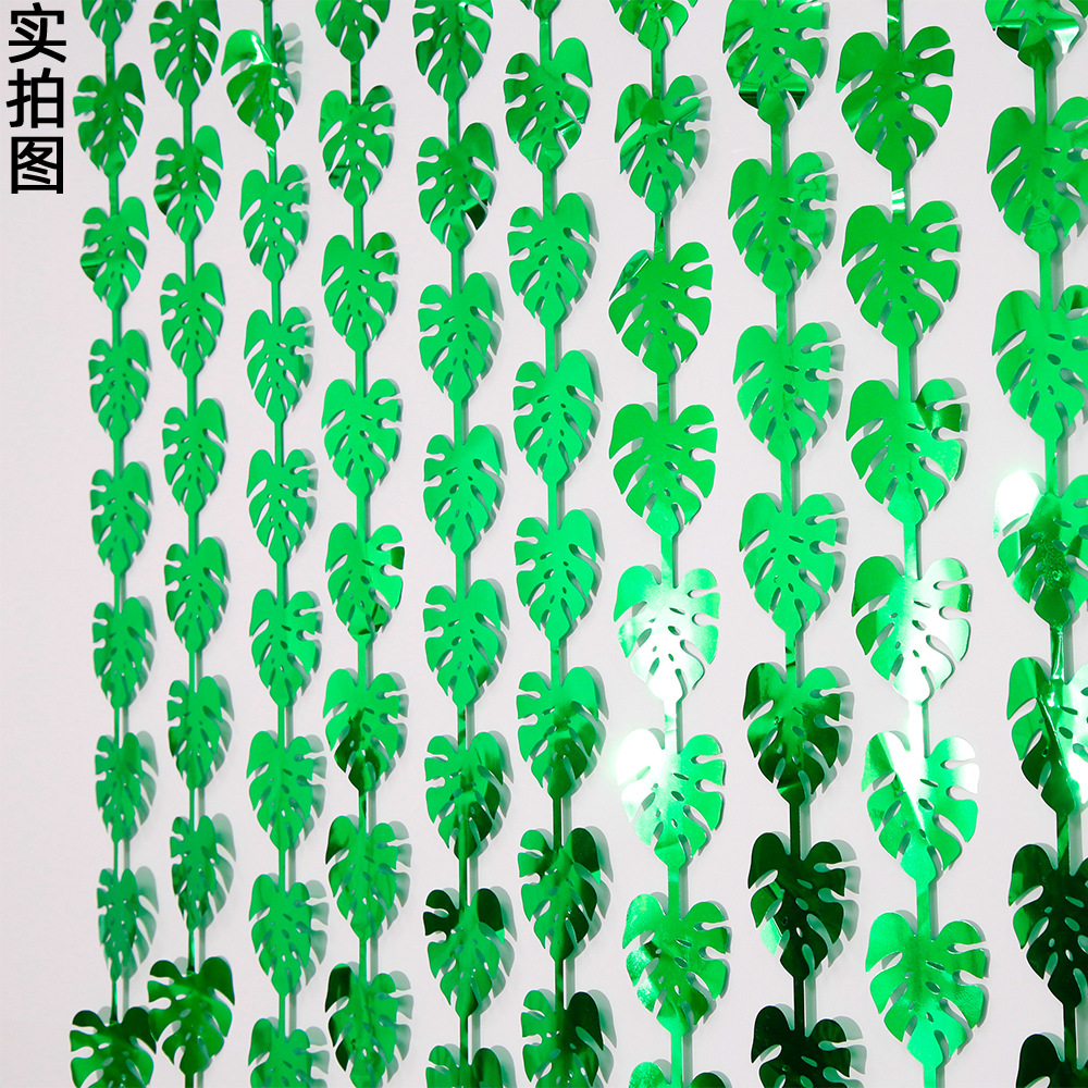 ハワイの装飾雨の糸のカーテンの森のテーマのパーティーの雰囲気は亀の背の葉のカーテンの2メートルの葉の雨の糸のカーテンを配置します。