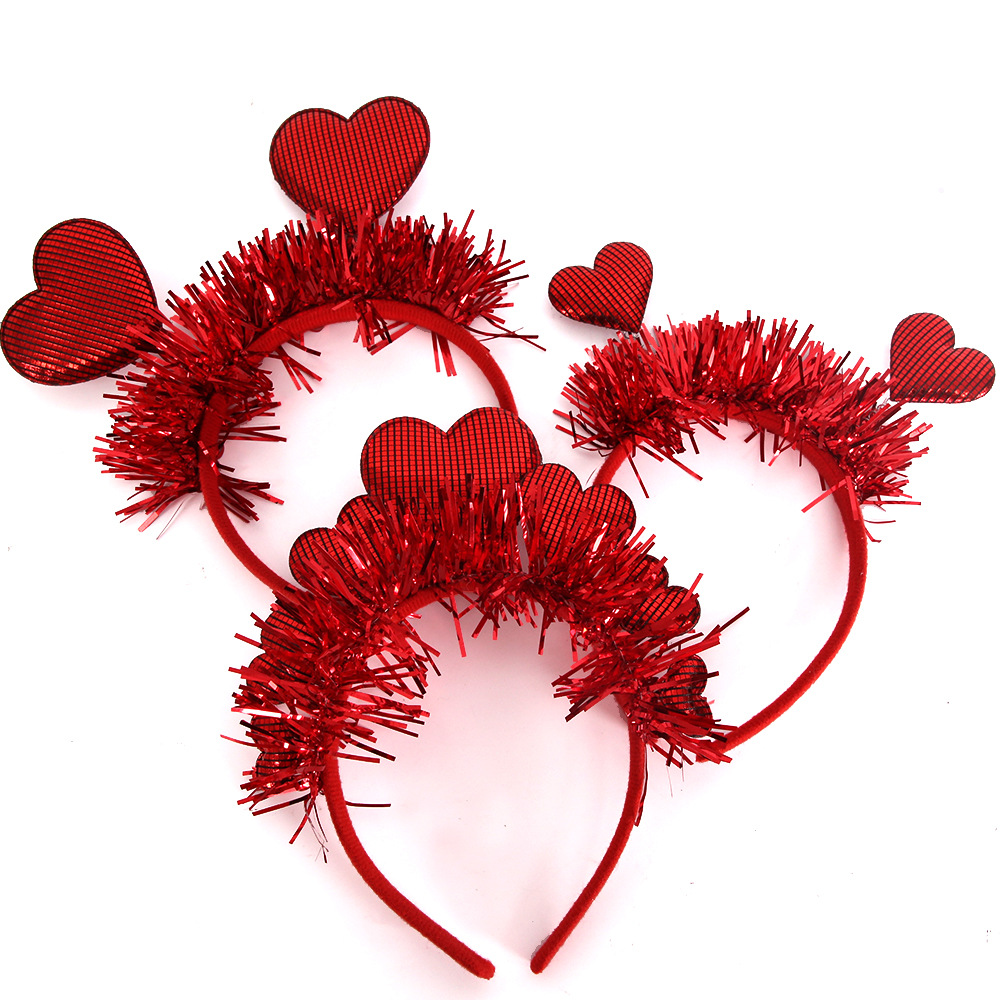 バレンタインデーのラブヘッドバンド結婚式クリエイティブレッドストリップピーチハートヘッドバンドパーティー装飾ハート型ヘッドバンド