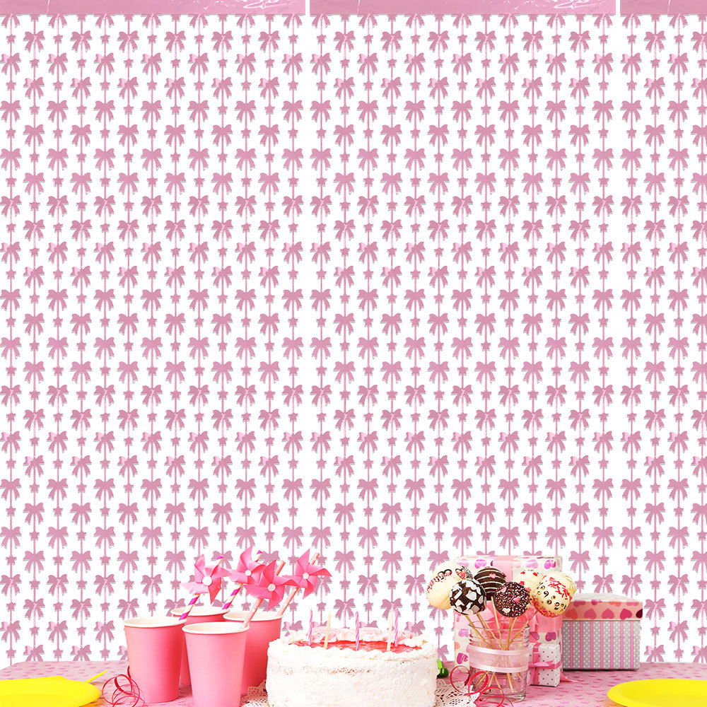 ピンクの蝶結びのテーマの誕生日パーティーは雨の糸のカーテンを飾ります。