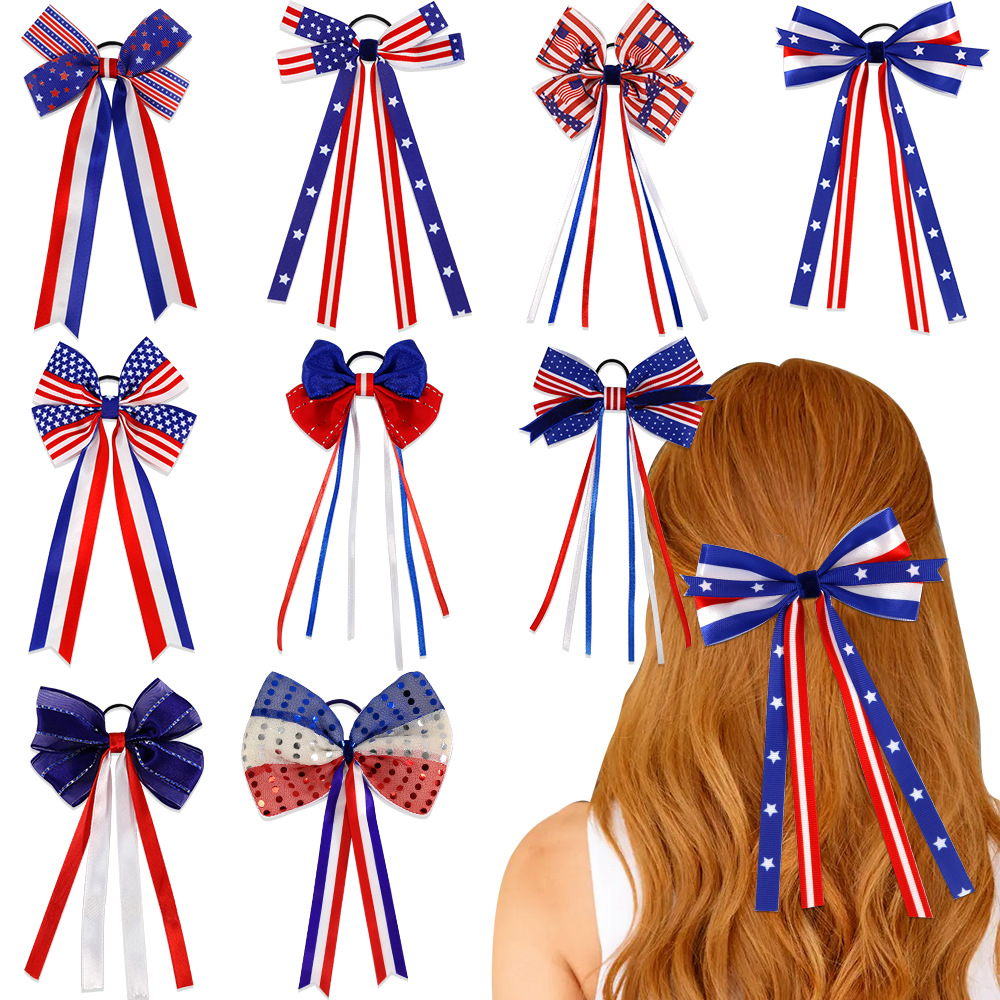 独立記念日の装飾蝶ネクタイヘッドバンド女性のための赤、白、青のリボンヘアバンド子供のパーティードレスアップアメリカ国旗ヘッドバンド