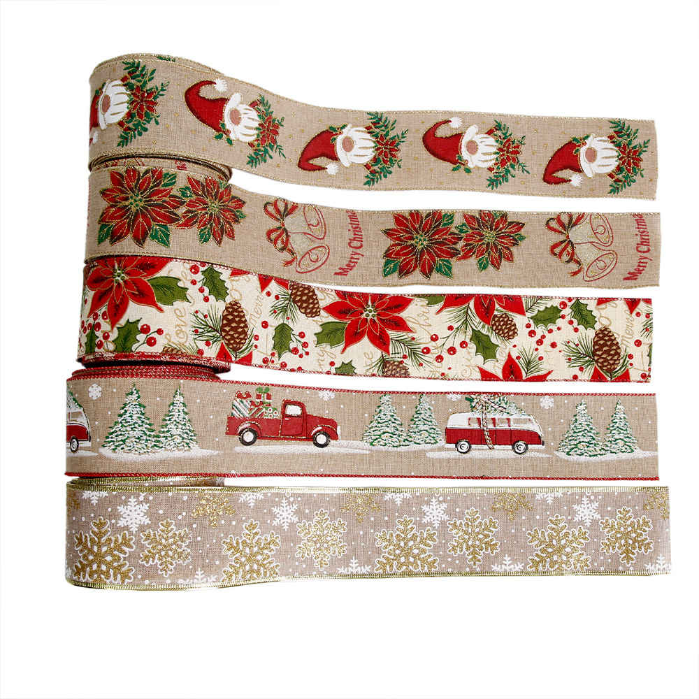 麻布カードのクリスマスリボンクリスマス装飾トラックの雪花プリントの拷問リボン松果老人リボン