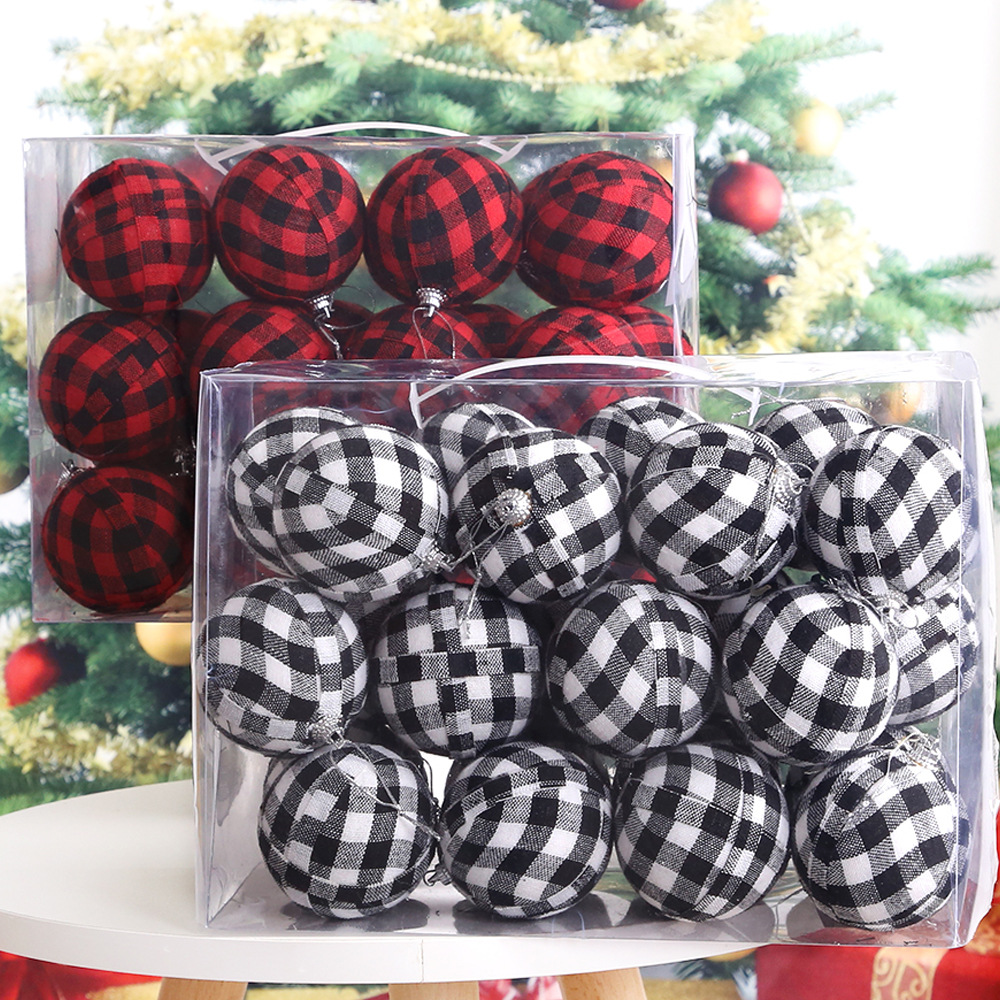 2025 新しいクリスマス黒と白の格子縞のクリスマスボールギフトボックスクリスマスツリー装飾ペンダントクリスマスボールギフトボックス