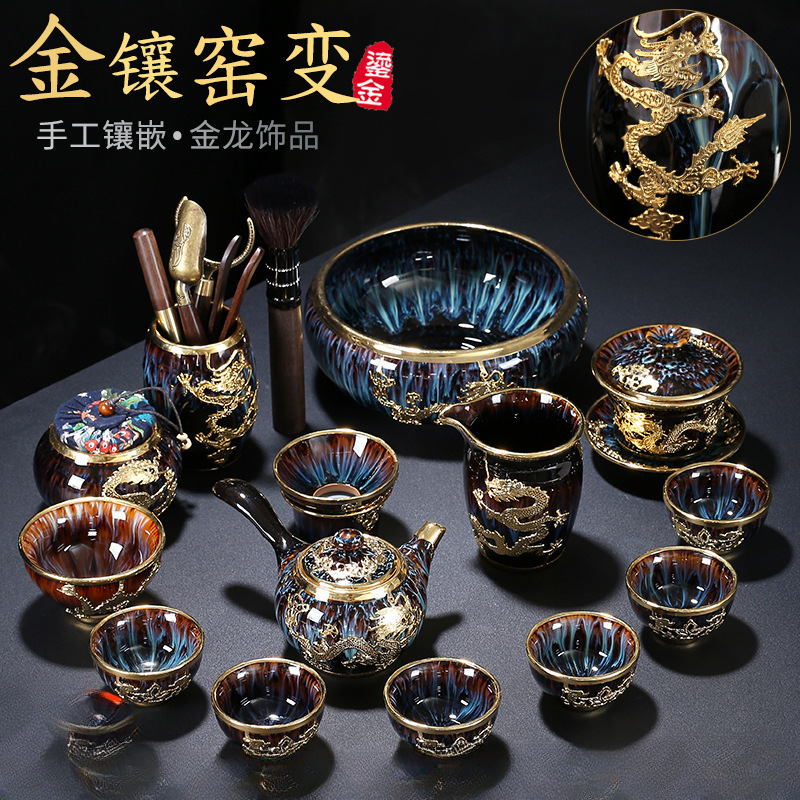 Vhm7卸売り贈り物金嵌り玉カンフー茶器セット家庭用オフィス陶磁器ティーポット客間中国式復古