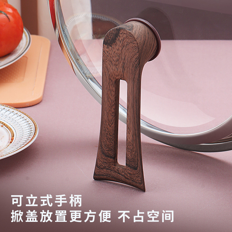 Vhm7鍋蓋家庭用鍋蓋付きハンドル30 32cm汎用耐高温円形ガラスステンレス蒸し鍋