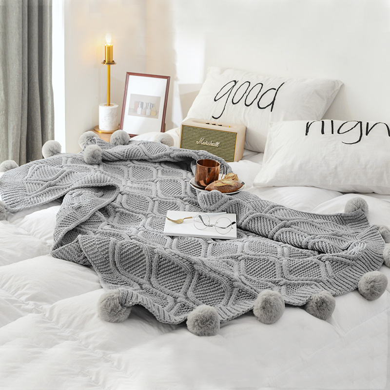 Vhm7厚手のシェニール毛玉カバーブランケットのニット毛布