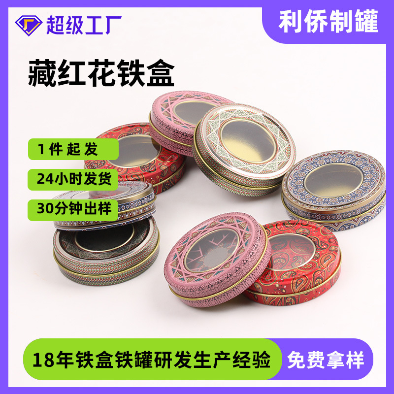 チベット紅花ギフトボックス窓開けブリキ箱クロスボーダー電気商樊文花包装製品箱チベット紅花鉄箱