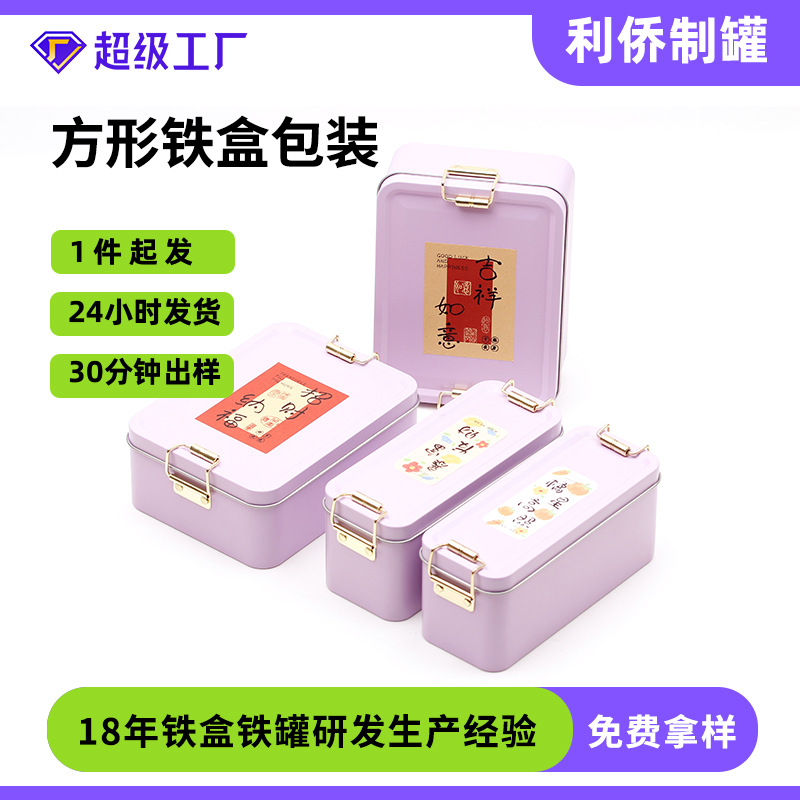 紫色のバックル鉄箱雪花ショートニング鉄箱クランベリービスケットドーパミン系角型ブリキ礼箱包装