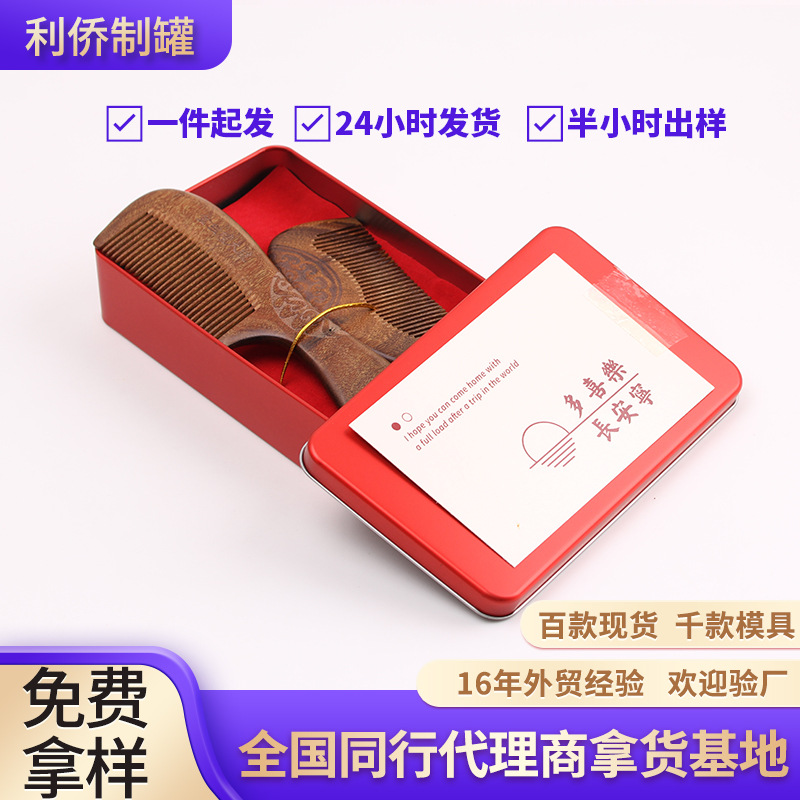 ブリキの長方形の櫛の鉄の箱の母の日のアイデアの贈り物のシルクの巾の木の櫛の四角形の鉄の箱の包装箱