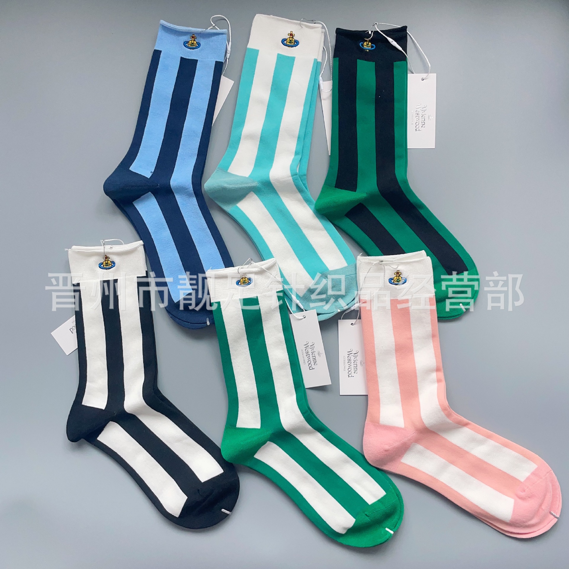 新商品の日単西太后土星のマークはカラーの泡の靴下をつなぎ合わせて色のストライプのレトロなファッションの中筒のスポーツの靴下にぶつかります。