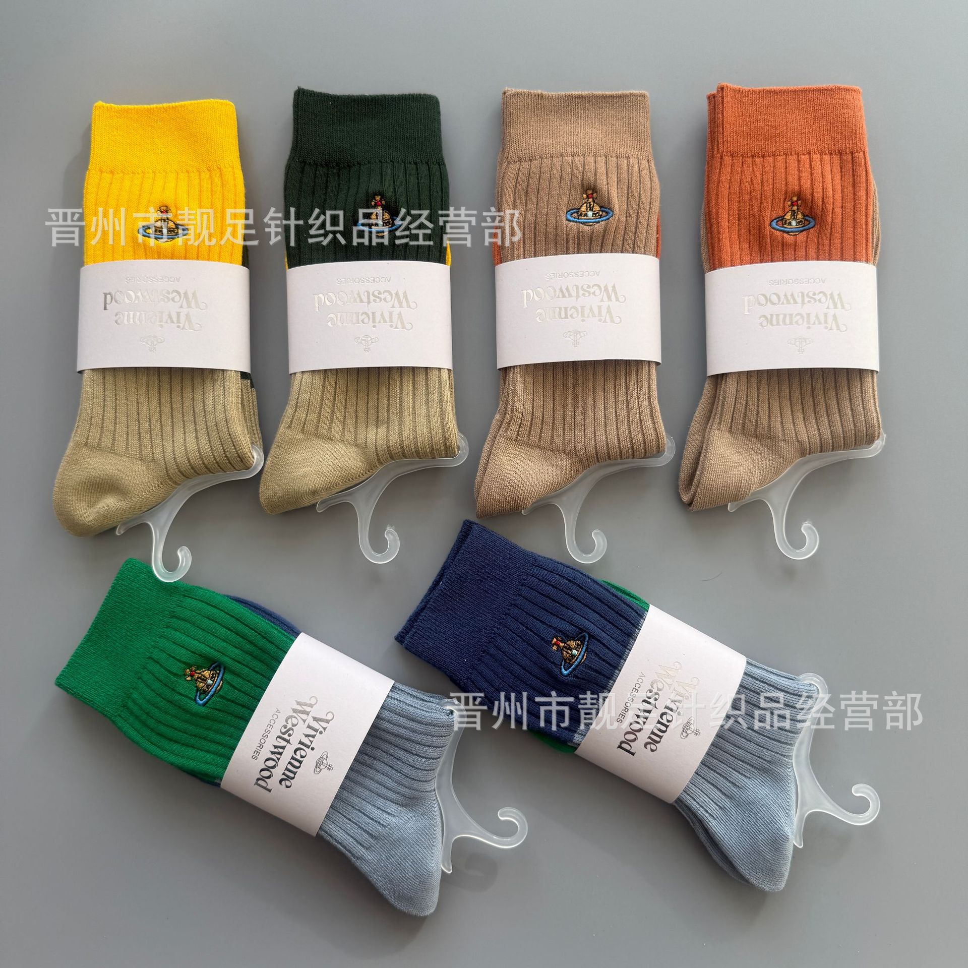 靴下の女性の新型の日本の土星の刺繍の双針の西太后の潮の中筒の女性の靴下の美ラードの靴下の卸売り