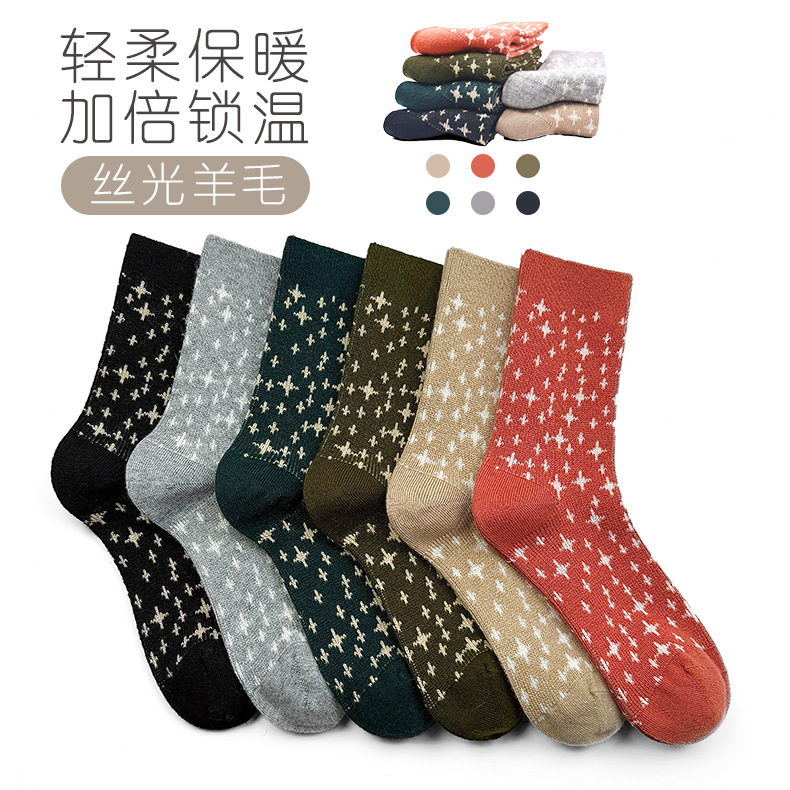 2025 春の新ダブルニードルダブルウェイシルケットウールレディースソックススターミッドチューブ秋冬パイルソックスインファッション