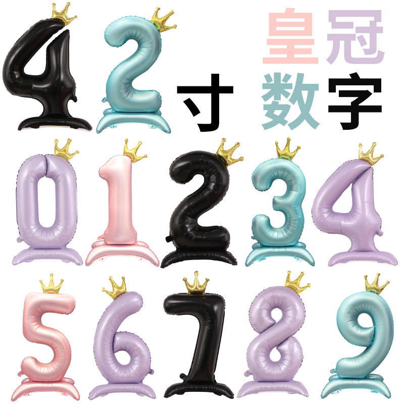 新型42インチ立ちクラウン数字ブルーピンク子供歳誕生日パーティー装飾アルミ膜風船