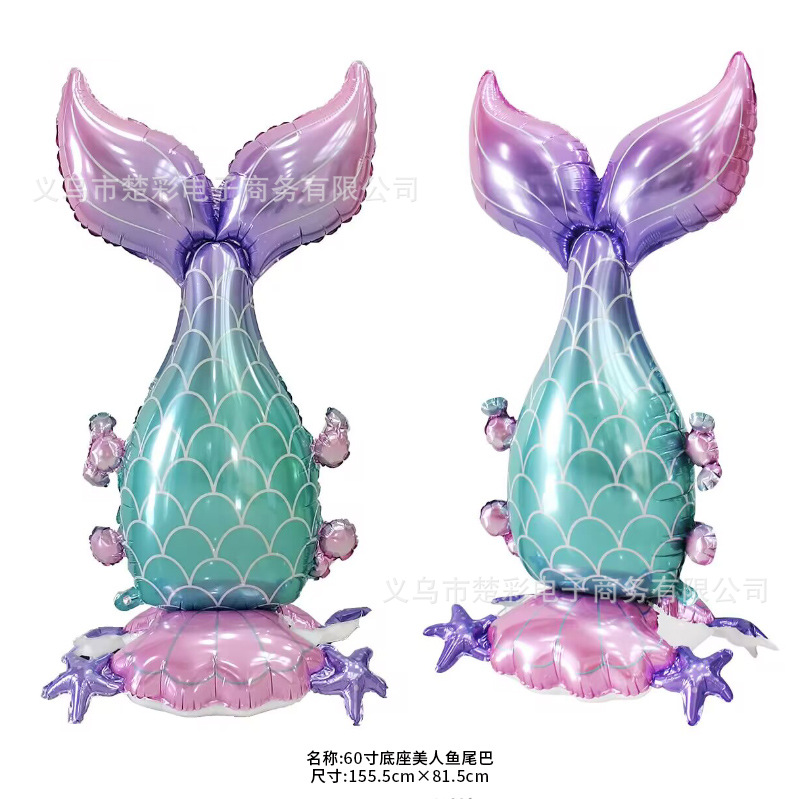 新しい60インチの台の大きいサイズの人魚のしっぽの風船は立って海洋のアルミニウムの膜のボールを飾ります。