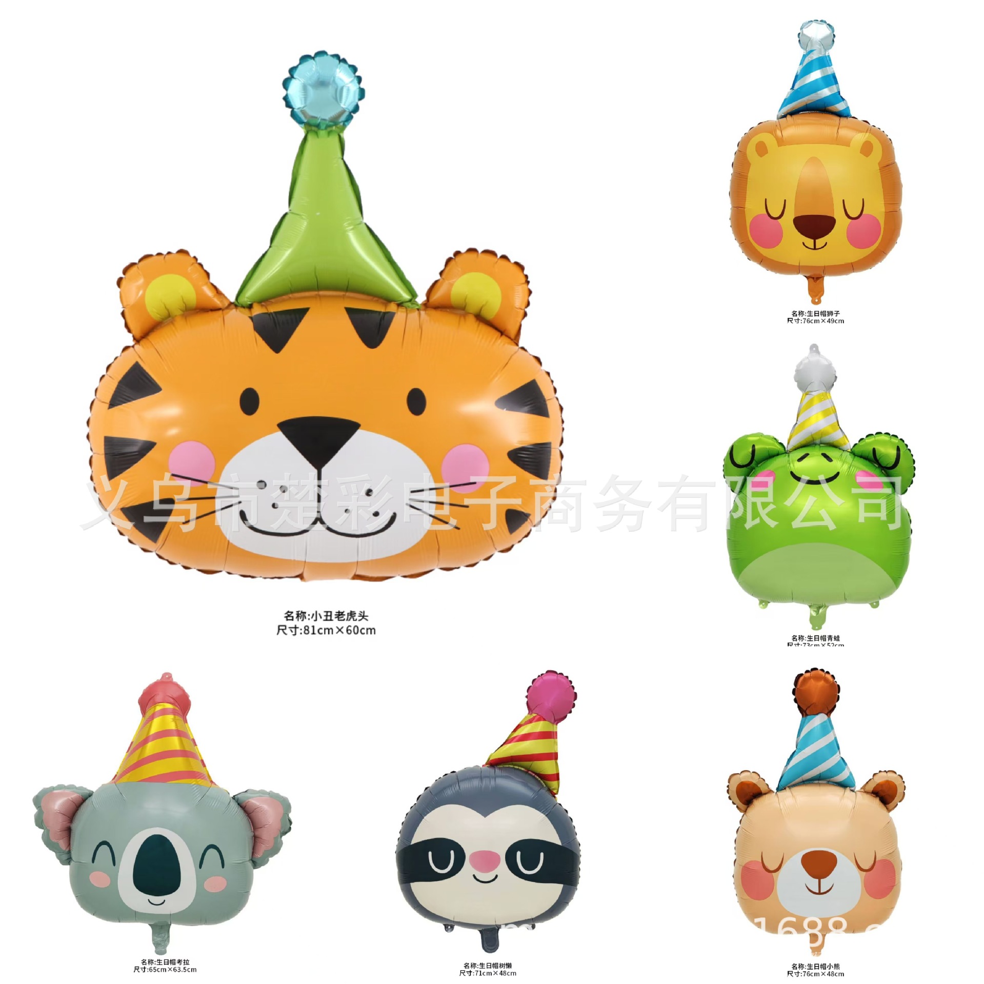 新しいジャングルの漫画の誕生日の帽子の小さい動物のトラの頭のライオンの赤ちゃんの誕生日のパーティーの装飾のアルミニウム膜のボール