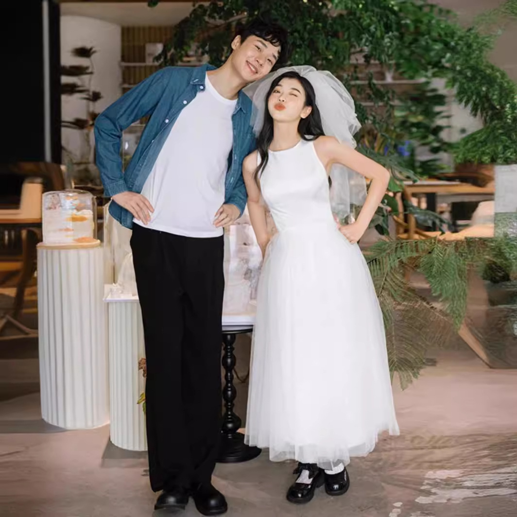旅行は軽いウェディングドレスを撮ります。2024夏はいつも屋外で登録します。