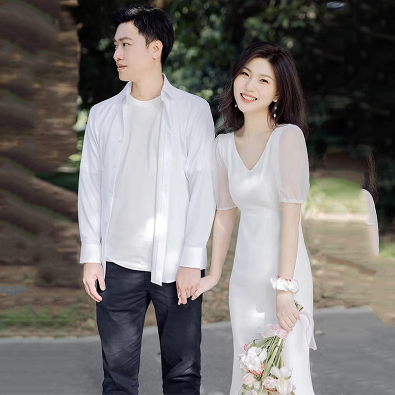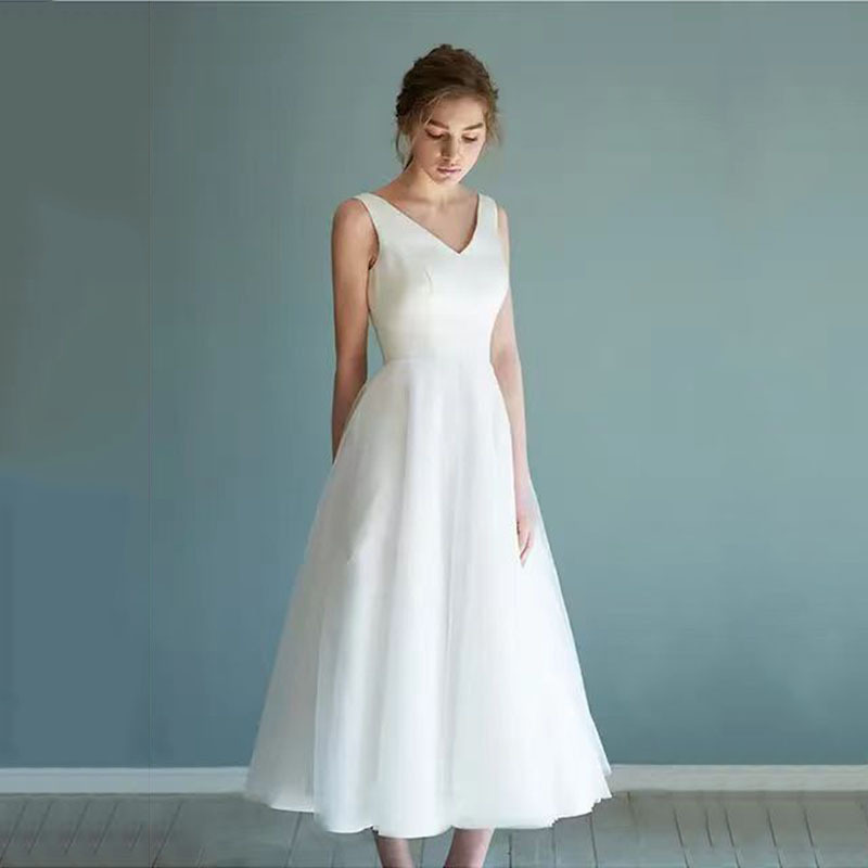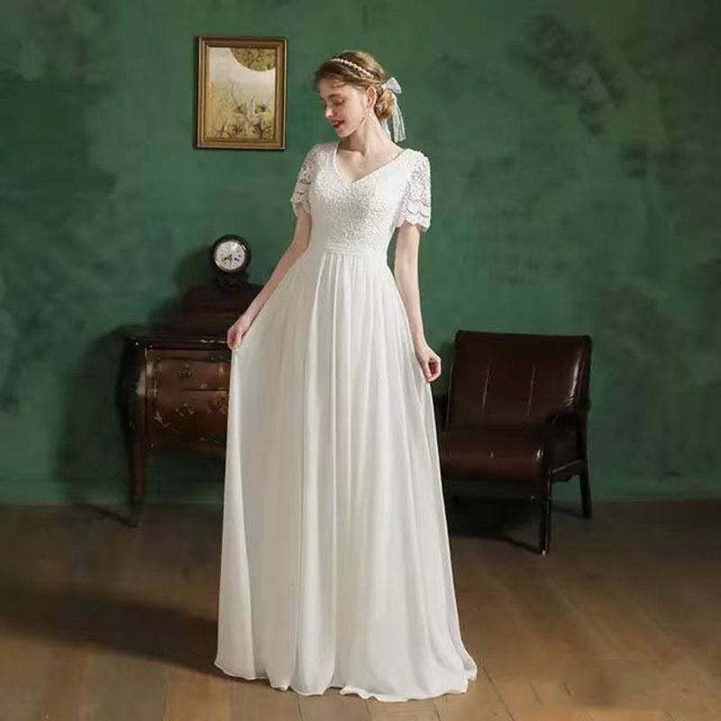 軽いウェディングドレス2024新型シンプルで上品な花嫁の旅はvネックを撮って糸の気質を身に着けて痩せている宴会を司会します。