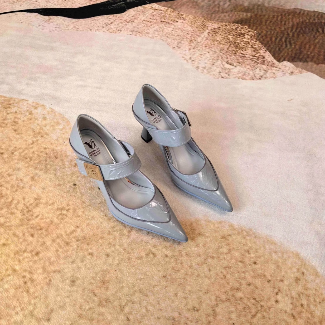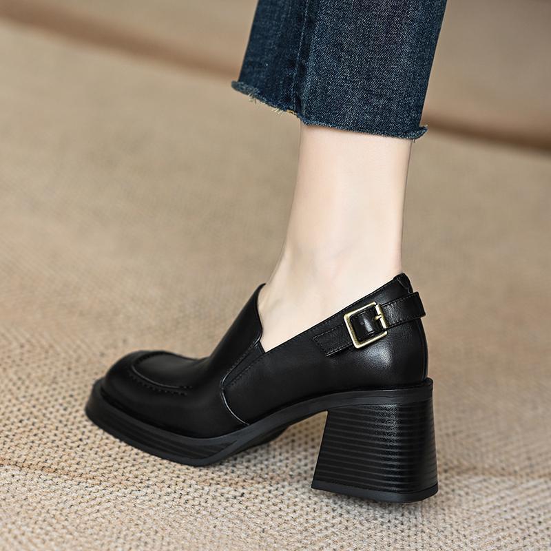 2025年春の新作フレンチスモールスクエアトゥレディースシングルシューズ浅口ワンラインバックルメリージェーンシューズ