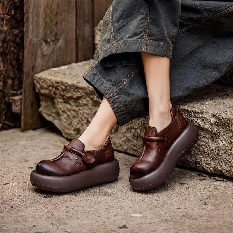 2025新型のレトロな厚い底のビスケットの靴の女性の英倫風の小さい革靴の百合の靴のカジュアルな楽福の靴