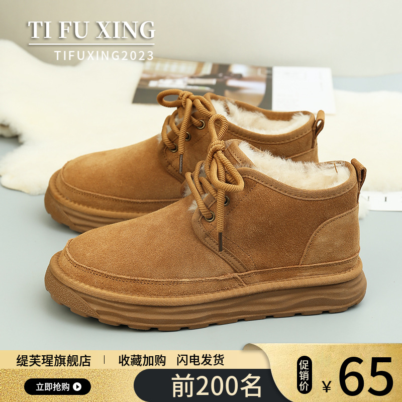 女性のウールの屋外の雪のブーツの女性の毛皮の一体の防水の滑り止めの保温の綿の靴の冬の低い組はショートブーツを厚くします。