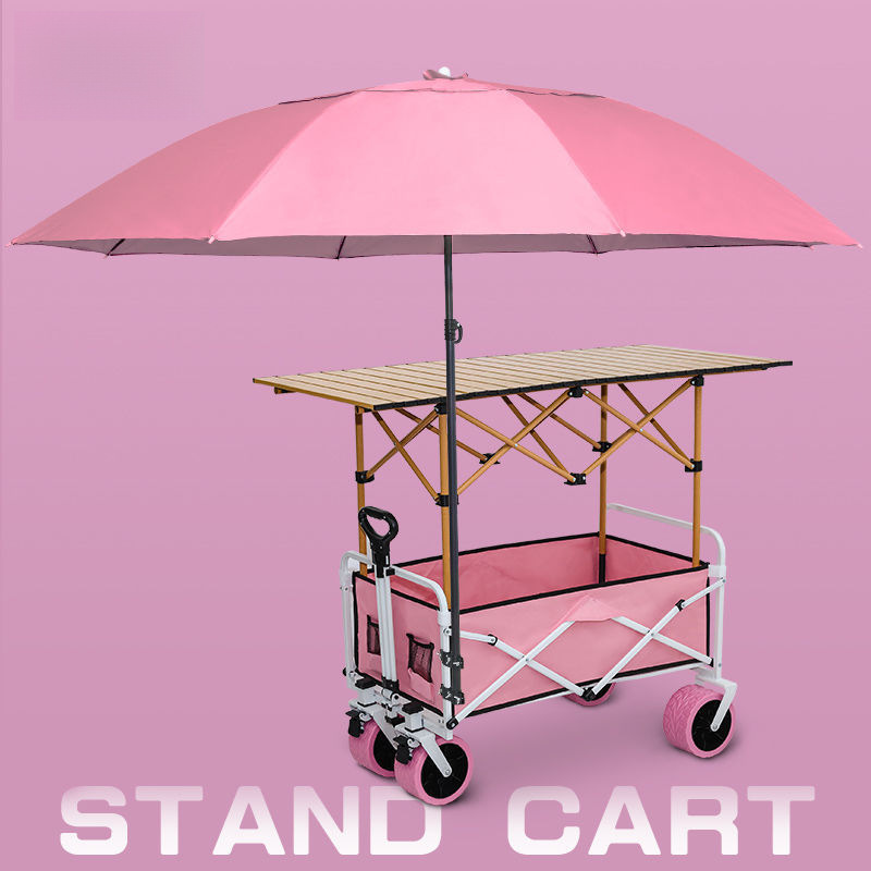 屋台のカートを並べて買い物をします。ピクニック車は折り畳みテーブルを持っています。