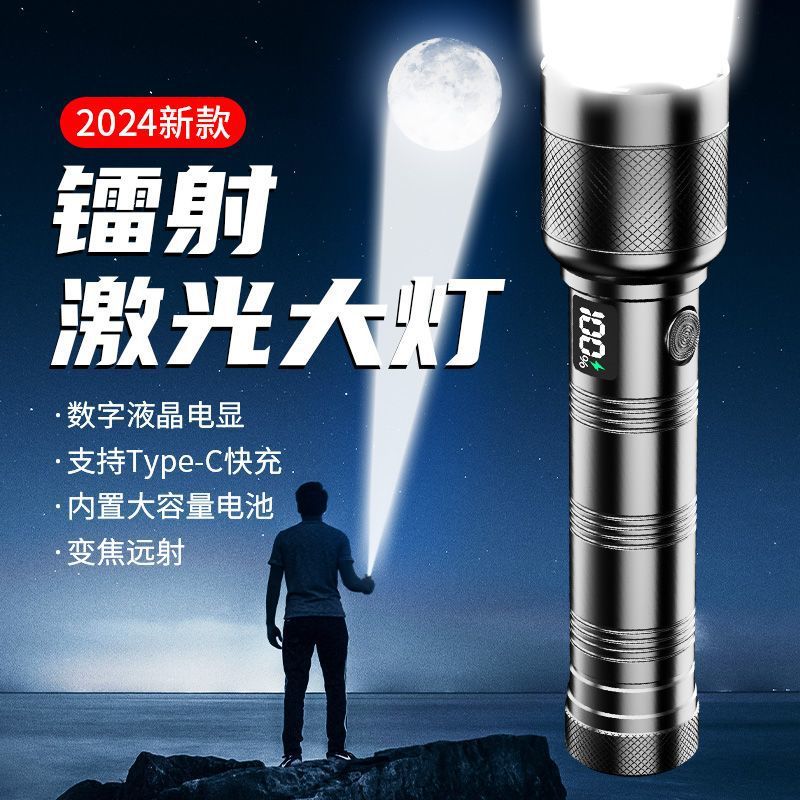 レーザー懐中電灯、強力な光、超高輝度ズーム、長距離屋外多機能ポータブル家庭用充電式、長いバッテリー寿命