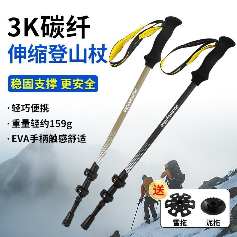 伸縮式ポータブル超軽量ハードカーボン 3K カーボンファイバーキャンプハイキング杖屋外登山用品