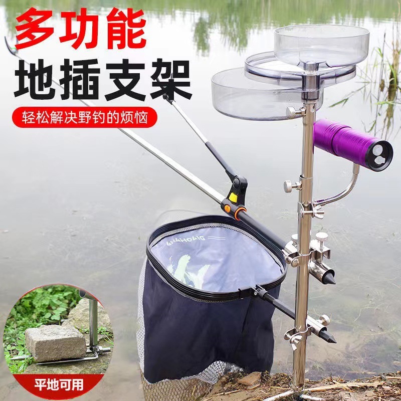 ステンレス製多機能野釣りフィッシングスタンド、砲台餌トレイ、フィッシングスタンド、釣具、釣り用品