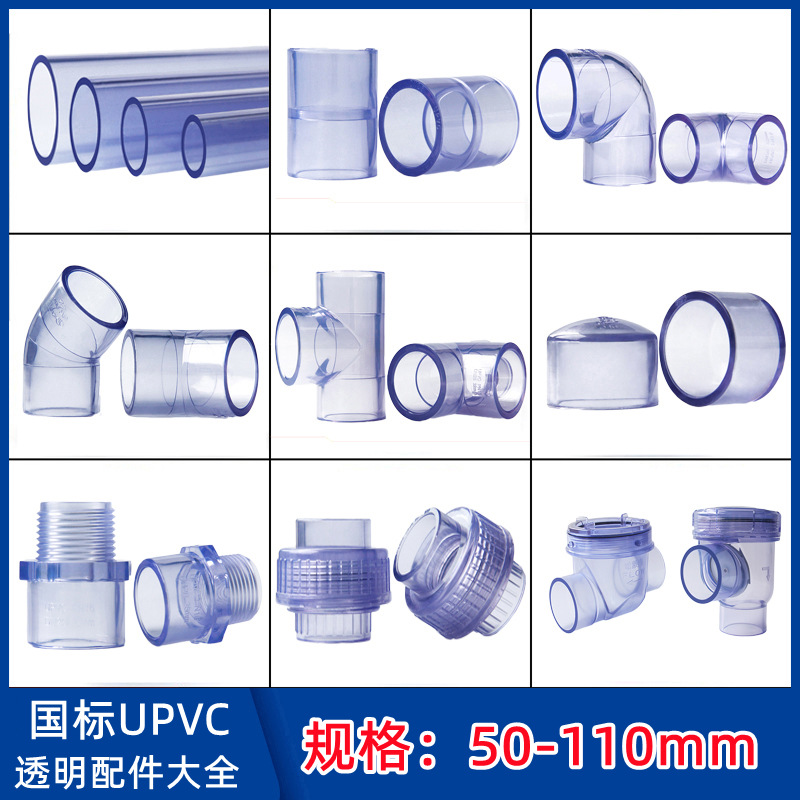 Pvc水道管透明硬管透明水管継手プラスチック直接エルボ三方直曲活接管キャップ卸売り