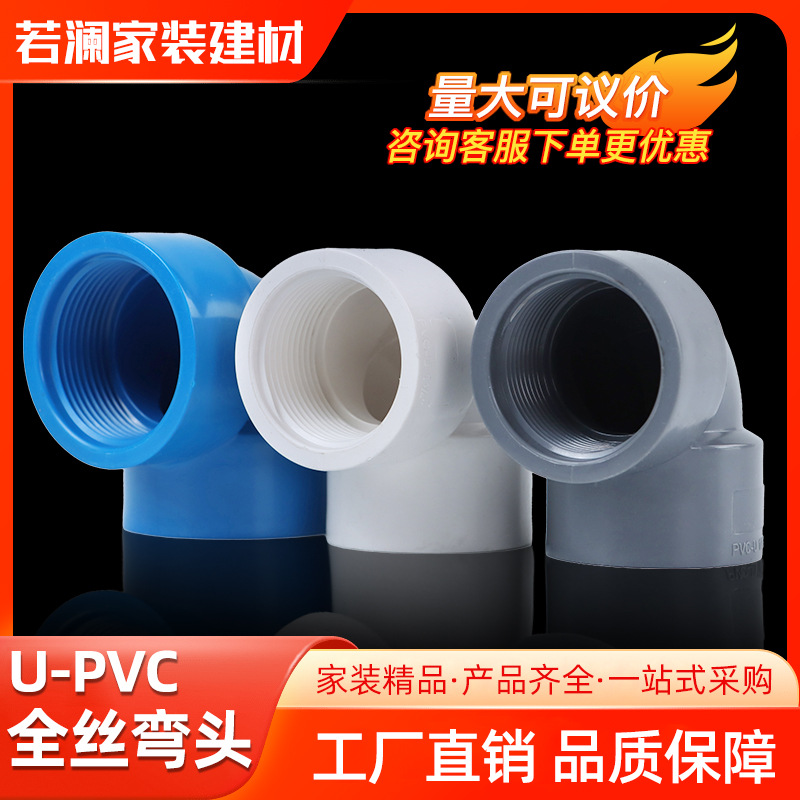 PVC双内歯エルボねじ付き内糸直角90エルボ白色プラスチック給水部品6分20 25 32
